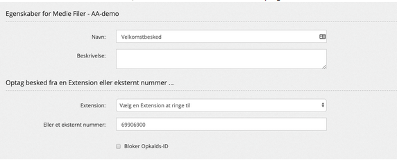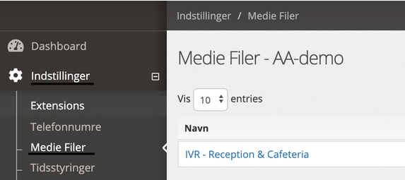 Når dette er afsluttet, kan du nu tilføje din medie fil til de ønskede områder (åbningstider, IVR m.m.).