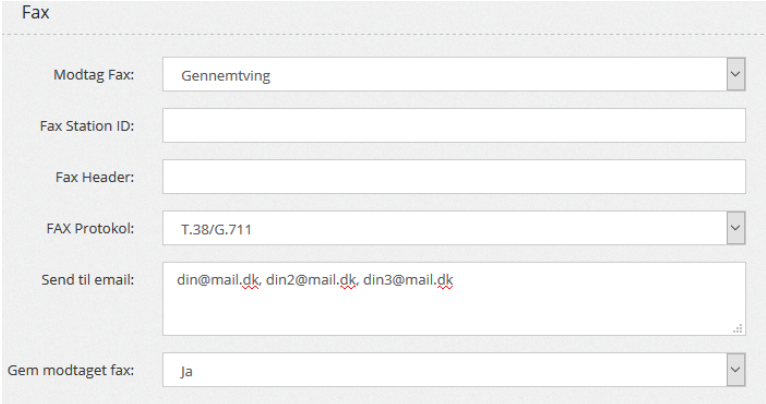 Send til email: Indtast de pågældende email-adresser der skal modtage Fax - adskil med komma.