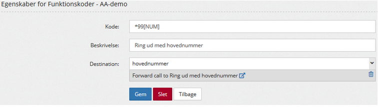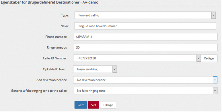 Destination: Forward call to "navn på din brugerdefineret destination".