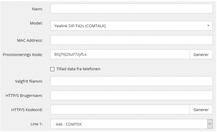 I oversigten vil telefonen nu blive vist med en autoprovisionerings URL. Denne skal bruges til at indsætte i telefonen!